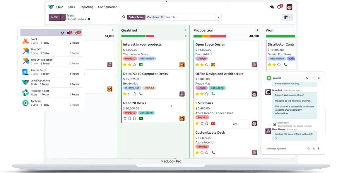 Desde contabilidad hasta punto de venta, Odoo integra cada proceso de tu empresa para que todo fluya sin fricción.